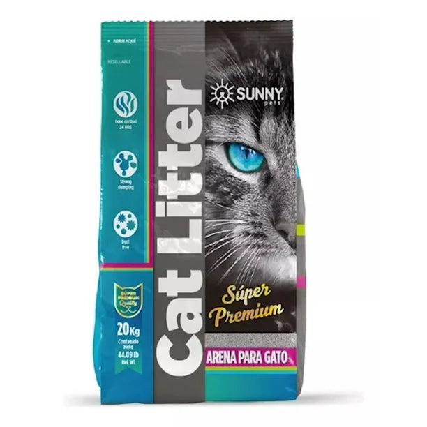 ARENA PARA GATOS IMPORTADA AROMA LAVANDA (BOLSA 20kg) BENTONITA SUPER AGLUTINANTE Y 99% LIBRE DE POLVO